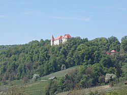 Bizeljsko Castle is a castle in Bizeljska Vas, a village in the Municipality of Brežice, southeastern Slovenia. It consists of a residential part that forms the centre of the complex and includes a Baroque chapel, and an outer part that served a defensive purpose.
