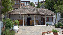 The Church of Hosios David is a late 5th-century church in Thessaloniki, Greece. During the Byzantine times, it functioned as the katholikon of the Latomos Monastery , and was adorned with rich mosaic and fresco decoration, which was renewed in the 12th–14th centuries. Today, the surviving examples are of high artistic quality. Under Ottoman rule, the building was converted into a mosque , until it was reconsecrated as a Greek Orthodox church in 1921, thus receiving its present name. In 1988, this monument was included among the Paleochristian and Byzantine monuments of Thessaloniki on the list of World Heritage Sites by UNESCO.