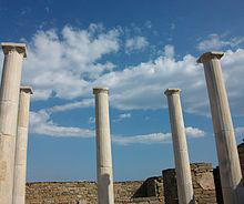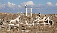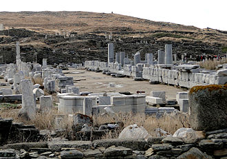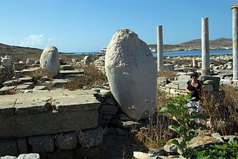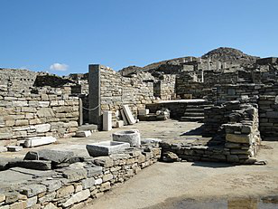 The island of Delos , near Mykonos, near the centre of the Cyclades archipelago, is one of the most important mythological, historical, and archaeological sites in Greece. The excavations in the island are among the most extensive in the Mediterranean; ongoing work takes place under the direction of the Ephorate of Antiquities of Cyclades, and many of the artifacts found are on display at the Archaeological Museum of Delos and the National Archaeological Museum of Athens.