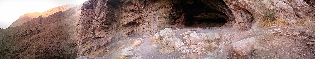 The Do-Ashkaft Cave, being a Middle Paleolithic cave site, is located north of Kermanshah, near Taq-e Bostan, Iran about 1,600 m above sea level. Its entrance faces south of Meywala Mount, overlooking the national park of Kuhestan. The site was first visited in 1996 by Iranian researchers F. Biglari and S. Heydari-Guran and during the following four years a series of surface surveys were made at one-month intervals, which resulted in a rich collection of Middle Paleolithic lithic artifacts.
