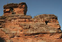 Drachenfels Castle is a ruined hill castle near the village of Busenberg in the state of Rhineland-Palatinate. It lies within the German half of the Wasgau region, the southern part of the Palatinate Forest.