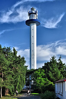 The Dueodde Lighthouse is located on the Danish island of Bornholm. It was built during the years 1960–62 and commissioned on 15 August 1962. It is 47 m in height, with a focal height of 48 m . It is the nodal point of the southeast coast line, warning ships to keep away from the extreme southern tip of the island. Dueodde Lighthouse is Denmark's tallest lighthouse and one of the most important lighthouses of the Baltic Sea.