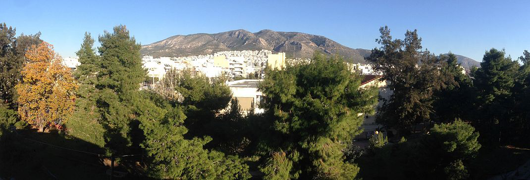 Euonymeia , also known by its medieval name Trachones , and by its modern colloquial Ano Kalamaki , is a historic settlement in Athens and currently a residential neighborhood within the municipality of Alimos on the southern suburbs of Athens, Greece. The area is an inland part of the south Athenian plain, situated between the foothills of Mount Hymettus and the southern coastal zone of Athens on the Saronic Gulf. The land is characterized by limestone hills and streams running from Hymettus toward the coast. Situated 7 kilometres south of the center of Athens, Euonymeia has been developed and incorporated into the urban sprawl of the Greek capital.