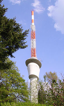 The Fernsehturm Heidelberg is a transmission tower for FM and DVB-T on the Königstuhl hill of Heidelberg at 49°24′16″N 8°43′46″E / 49.40444°N 8.72944°E / 49.40444; 8.72944. It was the property of the City of Heidelberg and sold to the SWR. Because of its exposed location on the crest of the hill the tower itself is only 82 meters high.