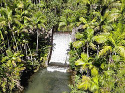 The Fonte River Dam is a historic dam on the Fonte River on the island of Guam. It is located in the upper third of the river's main valley, which is located between Nimitz Hill and Agana Heights, and lies below and west of the scenic overlook on Nimitz Hill. The dam, built in 1910, was part of the first organized effort by the United States Navy to provide a reliable water supply to the island's major settlement, Hagåtña . It is a concrete structure 150 feet long, 24 feet high, and has a 17 feet base. It is almost complete obscured by jungle overgrowth.