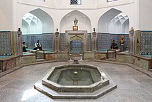 The Ganjali Khan Complex is a Safavid-era building complex, located in the old center of city of Kerman, Iran. The complex is composed of a school, a square, a caravanserai, a bathhouse , an Ab Anbar , a mint, a mosque and a bazaar.