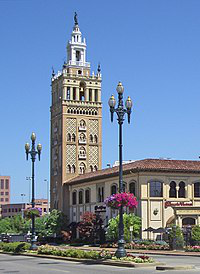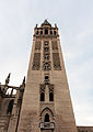 The Giralda is the bell tower of Seville Cathedral in Seville, Spain. It was built as the minaret for the Great Mosque of Seville in al-Andalus, Moorish Spain, during the reign of the Almohad dynasty, with a Renaissance-style top added by the Catholics after the expulsion of the Muslims from the area. Dating from the Reconquest of 1248 to the 16th century and built by the Moors. The Giralda was registered in 1987 as a World Heritage Site by UNESCO, along with the Alcázar and the General Archive of the Indies. The tower is 104.1 m in height and remains one of the most important symbols of the city, as it has been since the Middle Ages.