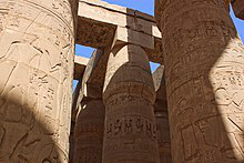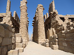 The Great Hypostyle Hall is located within the Karnak temple complex, in the Precinct of Amon-Re. It is one of the most visited monuments of Ancient Egypt. The structure was built around the 19th Egyptian Dynasty . Its design was initially instituted by Hatshepsut, at the North-west chapel to Amun in the upper terrace of Deir el-Bahri. The name refers to hypostyle architectural pattern.
