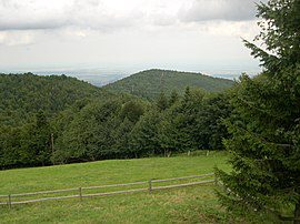 Hartmannswillerkopf, also known as the Vieil Armand or Hartmannsweiler Kopf is a pyramidal rocky spur in the Vosges mountains of the Grand Est region, France. The peak stands at 956 metres overlooking the Rhine valley. At Hartmannswillerkopf stands a national monument of World War I for the fighting which took place in the trenches here.