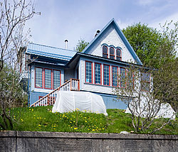 The J. M. Davis House is a historic house at 202 6th Street in Juneau, Alaska. This two-story wood frame house was built in 1892, when Juneau was little more than a gold mining camp, and remains one of its most elegant homes of the period, as well as one of its oldest buildings. The builder, J. M. Davis, was a miner whose wife was a wealthy English artist. Their son, Trevor Davis, was a noted Alaskan landscape photographer; the house has also served as the official residence of the local US Coast Guard Admiral.