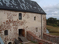 Kastelholm Castle is a Swedish-built medieval castle located off Road 2 in Sund, Åland, Finland, approximately 25 kilometres northeast of Mariehamn, overlooking a fjord to the south of the village of Kastelholm. Along with Hämeenlinna, Olavinlinna in Savonlinna, Raasepori, and Turku, Kastelholm is one of only five surviving Finnish medieval fortresses that are also considered to be architecturally substantial. Built in the 14th century, and held in fief during the Middle Ages by various nobles, feudal chiefs, and kings, it had significant period in the 15th and 16th centuries.
