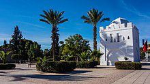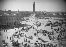 The Kutubiyya Mosque ]) or Koutoubia Mosque is the largest mosque in Marrakesh, Morocco. The mosque's name is also variably rendered as Jami' al-Kutubiyah, Kutubiya Mosque, Kutubiyyin Mosque, and Mosque of the Booksellers. It is located in the southwest medina quarter of Marrakesh, near the famous public place of Jemaa el-Fna, and is flanked by large gardens.