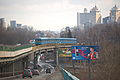The Metro Bridge is the first metro bridge part of the Brovarsky prospect spanning across the Dnipro River in Kyiv, the capital of Ukraine. It was engineered by G. Fuks and Y. Inosov and constructed in 1965 with the expansion of the Kyiv Metro system. The bridge is used for both the Sviatoshynsko-Brovarska Line of the metro and for automobile traffic.