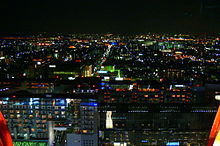 Kyoto Tower is an observation tower located in Kyoto, Japan. The steel tower is the tallest structure in Kyoto with its observation deck at 100 metres and its spire at 131 metres . The 800-ton tower stands atop a 9-story building, which houses a 3-star hotel and several stores. The entire complex stands opposite Kyōto Station.