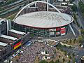 Lanxess Arena is an indoor arena, in Cologne, North Rhine-Westphalia, Germany. It is known as the 18,500-capacity home of the Kölner Haie. The arena opened in 1998 and can accommodate 20,000 people for concerts. With its capacity of 18,500, it is the largest ice hockey arena outside North America.