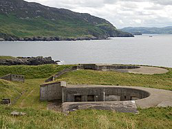 Lenan Head Fort, Lough Swilly, Inishowen, County Donegal was built in 1895, initially with three 9.2 inch Breech Loading guns. Following recommendations of the Owen Committee in 1905, it was refitted in 1911 with two newer Mark X 9.2 inch models. Both guns were operational during the First World War.