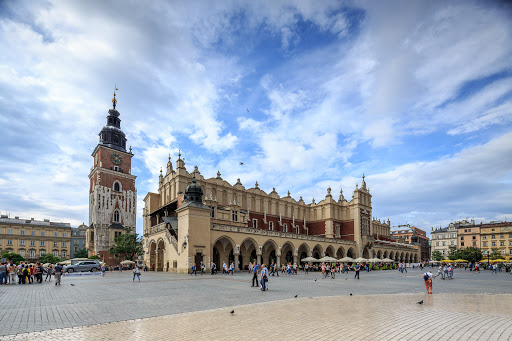 The main square of the Old Town of Kraków, Lesser Poland, is the principal urban space located at the center of the city. It dates back to the 13th century, and at roughly 40,000 m2 (430,000 ft2) is one of the largest medieval town squares in Europe. The Project for Public Spaces (PPS) lists the square as the best public space in Europe due to its lively street life.