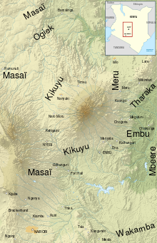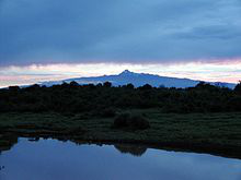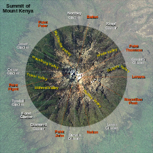 Mount Kenya is the highest mountain in Kenya and the second-highest in Africa, after Kilimanjaro. The highest peaks of the mountain are Batian , Nelion and Point Lenana . Mount Kenya is located in the former Eastern and Central provinces of Kenya, now Meru, Embu, Laikipia, Kirinyaga, Nyeri and Tharaka Nithi counties, about 16.5 kilometres south of the equator, around 150 km north-northeast of the capital Nairobi. Mount Kenya is the source of the name of the Republic of Kenya.