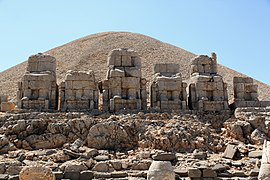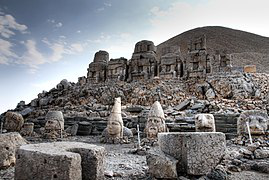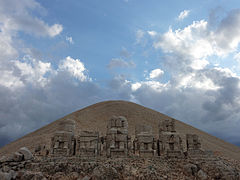 Nemrut or Nemrud is a 2,134-metre-high mountain in southeastern Turkey, notable for the summit where a number of large statues are erected around what is assumed to be a royal tomb from the 1st century BC. It is one of the highest peaks in the east of the Taurus Mountains.