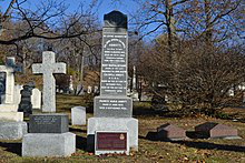 Opened in 1852, Mount Royal Cemetery is a 165-acre terraced cemetery on the north slope of Mount Royal in the borough of Outremont, Montreal, Quebec, Canada. Temple Emanu-El Cemetery, a Reform Judaism burial ground is within the Mount Royal grounds. The burial ground shares the mountain with the much larger adjacent Roman Catholic cemetery, Notre Dame des Neiges Cemetery, and the Shaar Hashomayim Cemetery, an Ashkenazi Jewish cemetery. Mount Royal Cemetery is bordered on the southeast by Mount Royal Park, on the west by Notre-Dame-des-Neiges Cemetery and on the north by Shaar Hashomayim Cemetery.
