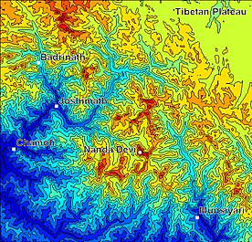 Nanda Devi is the second highest mountain in India after Kangchenjunga and the highest located entirely within the country. It is the 23rd-highest peak in the world. It was considered the highest mountain in the world before computations in 1808 proved Dhaulagiri to be higher. It was also the highest mountain in India until 1975 when Sikkim, the state in which Kangchenjunga is located, joined the Republic of India. It is part of the Garhwal Himalayas, and is located in Chamoli district of Uttarakhand, between the Rishiganga valley on the west and the Goriganga valley on the east. The peak, whose name means "Bliss-Giving Goddess", is regarded as the patron-goddess of the Uttarakhand Himalaya. In acknowledgment of its religious significance and for the protection of its fragile ecosystem, the peak as well as the circle of high mountains surrounding it—the Nanda Devi sanctuary—were closed to both locals and climbers in 1983. The surrounding Nanda Devi National Park was declared a UNESCO World Heritage Site in 1988.