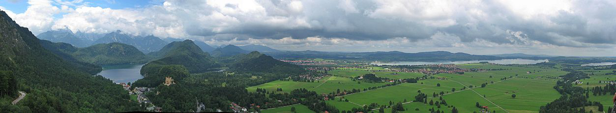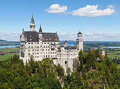 Neuschwanstein Castle is a 19th-century romantic eclecticism palace on a rugged hill above the village of Hohenschwangau near Füssen in southwest Bavaria, Germany. The palace was commissioned by King Ludwig II of Bavaria as a retreat and in honour of Richard Wagner. Ludwig paid for the palace out of his personal fortune and by means of extensive borrowing, rather than Bavarian public funds.