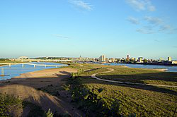 Nijmegen ] ;, Nijmeegs: Nimwèège [ˈnɪmβ̞ɛːxə]) is a city in the Netherlands' province of Gelderland, on the Waal river close to the German border.