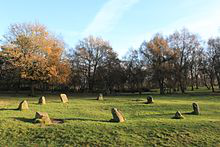 Nine Ladies is a Bronze Age stone circle located on Stanton Moor, Derbyshire, England. Part of the Peak District National Park, the site is owned by English Heritage and is often visited by tourists and hill walkers. Druids and pagans occasionally celebrate summer solstice there. The Peak District Boundary Walk runs past the monument.