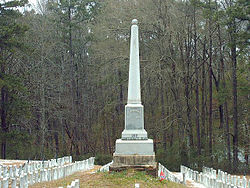 Oakland Cemetery is a historic cemetery in Camden, Arkansas, located on Maul Road between Pearl Street and Madison Avenue. Established in 1830, it is the city's oldest cemetery. It consists of just over 7 acres of land donated in that year by William L. Bradley, one of Camden's founders. It is the burial site of many of Camden's leading citizens. An area of just under one acre which is separated from the rest of the cemetery by a chain fence is reserved for Camden's Confederate States Army fallen, and features a granite obelisk topped by a cannonball. There are 231 graves in this section, including both known and unknown individuals.