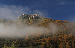 The Ostrovica Castle is a large medieval structure situated above the small village of Ostrovica near Kulen Vakuf, Bihać municipality, Bosnia and Herzegovina. Having been built on a woody ridge of a steep hill overlooking left bank of the shallow Una river, the castle was located on a strategic site connecting the northern and southern parts of the long Una valley.