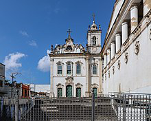 The Parish Church of Our Lady of Pilar is an 18th-century Roman Catholic church located in Salvador, Bahia, Brazil. It includes a cemetery, constructed in the Neoclassical parallel to the nave of the church. The interior of the church has an extensive set of azulejo tiles in the rococo style. The historian Carlos Ott dated them to the late 18th century, and stated that they appear to be the work of the Juncal workshop in Portugal. The stonework of the church is in lioz stone, imported from Lisbon at great expense. The art historian Germain Bazin describes the church as a "refinement of forms", due to its long, narrow nave and lack of corridors in the nave.