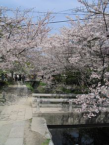 The Philosopher's Walk is a pedestrian path that follows a cherry-tree-lined canal in Kyoto, between Ginkaku-ji and Nanzen-ji. The route is so-named because the influential 20th-century Japanese philosopher and Kyoto University professor Nishida Kitaro is thought to have used it for daily meditation. It passes a number of temples and shrines such as Hōnen-in, Ōtoyo Shrine, and Eikan-dō Zenrin-ji. It takes about 30 minutes to complete the walk, although many people spend more time visiting the sights along the way. On the northern part of the walk, there are good views of the nearby Daimonji. The walk is a popular destination for tourists and locals, especially during hanami.