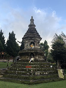 Pura Ulun Danu Beratan, or Pura Bratan, is a major Hindu Shaivite Shiva temple in Bali, Indonesia. The temple complex is on the shores of Lake Bratan in the mountains near Bedugul. The water from the lake serves the entire region in the outflow area; downstream there are many smaller water temples that are specific to each irrigation association .