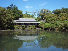 Rakuju-en is a public park with a Japanese garden and zoo, located in the city of Mishima, Shizuoka Prefecture, Japan. It was designated as a National Place of Scenic Beauty of Japan and well as a Natural monument of Japan in 1954. In 2012, the Rakuju-en was designated as part of the Izu Peninsula Geopark