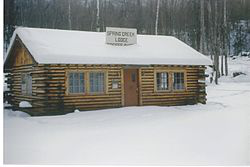 The Spring Creek Lodge is a historic former restaurant at 18389 Old Glenn Highway in the Chugiak area of Anchorage, Alaska. Vernon and Alma Haik built the Spring Creek Lodge in 1949. It served as an essential eatery and community center in southcentral Alaska from 1949 to 1974. The lodge was famous for its homemade bread and banana cream pies, and it was the place to go for a hearty Sunday dinner. For 25 years, the lodge served homesteaders, hunters from the Matanuska Valley, and military personnel from the Elmendorf Air Force Base and Fort Richardson in Anchorage. The lodge stands at Mile 20 on the two-lane Palmer Highway halfway between Palmer and Anchorage. It also served as the first community center for the early settlers of Chugiak. On September 9, 2001, the Spring Creek Lodge was inducted to the National Register of Historic Places "in recognition of its contributions to the cultural heritage of Alaska." The restaurant was a local landmark until its location was bypassed by the new Glenn Highway in 1969, after which it closed.
