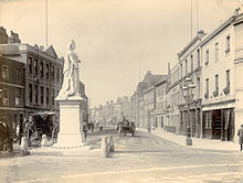 The statue of Queen Victoria stands at the western end of Friar Street outside the Town Hall of Reading, Berkshire, in southern England.
