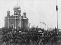 The Suomenlinna Church in Helsinki, Finland, was built in 1854 as an Eastern Orthodox garrison church for the Russian troops stationed at the Suomenlinna sea fortress. The fortress comprises five islands joined together by bridges, and the church is the central feature on the island of Iso Mustasaari , located at its highest point. It is surrounded by other fortress buildings, but the old parade ground is immediately to the east, and a park lies immediately to the south. It is oriented southwest to northeast so that it would align with the Crownwork Ehrensvärd defense front located to the southwest of the church.