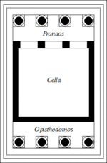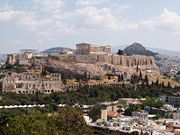 The Temple of Athena Nike is a temple on the Acropolis of Athens, dedicated to the goddesses Athena and Nike. Built around 420 BC, the temple is the earliest fully Ionic temple on the Acropolis. It has a prominent position on a steep bastion at the south west corner of the Acropolis to the right of the entrance, the Propylaea. In contrast to the Acropolis proper, a walled sanctuary entered through the Propylaea, the Victory Sanctuary was open, entered from the Propylaea's southwest wing and from a narrow stair on the north. The sheer walls of its bastion were protected on the north, west, and south by the Nike Parapet, named for its frieze of Nikai celebrating victory and sacrificing to their patroness, Athena and Nike.