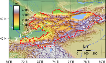 The Tian Shan, also known as the Tengri Tagh or Tengir-Too, meaning the Mountains of Heaven or the Heavenly Mountain, is a large system of mountain ranges located in Central Asia. The highest peak in the Tian Shan is Jengish Chokusu, at 7,439 metres high. Its lowest point is the Turpan Depression, which is 154 m below sea level.
