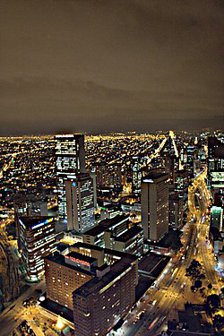 The Torre Colpatria is a 50-story skyscraper in the downtown area of Bogotá, Colombia. It's the third tallest building in the country and the fifth-tallest in South America. Constructed from 1973 to 1978 and opened in 1979, it has a total height of 196 metres , becoming the tallest skyscraper of Colombia and holding that title until 2016, when the south tower of the BD Bacatá was topped off. The main headquarters of the Colpatria Bank are located in the building, and also a great number of other banks and financial corporations have offices in it. The building lies at the intersection of 26th street and 7th avenue, in the heart of the city's downtown.