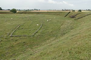 The Trelleborg west of Slagelse on the Danish island of Zealand, is one of seven Viking ring castles discovered as of 2014. In its day, the fortress was situated on a peninsula that jutted into the swampy area between two rivers. The swamp was connected to the Great Belt by a lake that at its time could be navigated by Viking ships. Trelleborg is believed to have been ordered by King Harald Bluetooth in the year 980 AD and it might have commanded the Great Belt and its sea traffic, between the islands of Zealand and Funen.