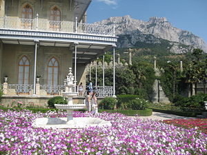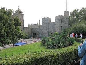 The Vorontsov Palace or the Alupka Palace is a historic palace situated at the foot of the Crimean Mountains near the town of Alupka in Crimea. The Vorontsov Palace is one of the oldest and largest palaces in Crimea, and is one of the most popular tourist attractions on Crimea's southern coast.