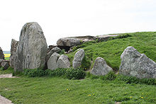 The West Kennet Long Barrow, also known as South Long Barrow, is a chambered long barrow located near the village of Avebury in the south-western English county of Wiltshire. Probably constructed in the thirty-seventh century BCE, during Britain's Early Neolithic period, today it survives in a partially reconstructed state.
