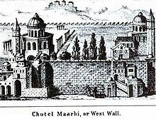 The Western Wall, Wailing Wall , often shortened to The Kotel or Kosel, known in Islam as the Buraq Wall , is an ancient limestone wall in the Old City of Jerusalem. It is a relatively small segment of a far longer ancient retaining wall, known also in its entirety as the "Western Wall". The wall was originally erected as part of the expansion of the Second Jewish Temple begun by Herod the Great, which resulted in the encasement of the natural, steep hill known to Jews and Christians as the Temple Mount, in a huge rectangular structure topped by a flat platform, thus creating more space for the Temple itself, its auxiliary buildings, and crowds of worshipers and visitors.