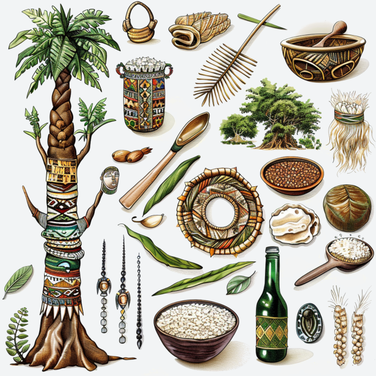 Palm wine, a traditional alcoholic beverage made from the sap of palm trees, symbolizes cultural heritage, traditional practices, and social customs.